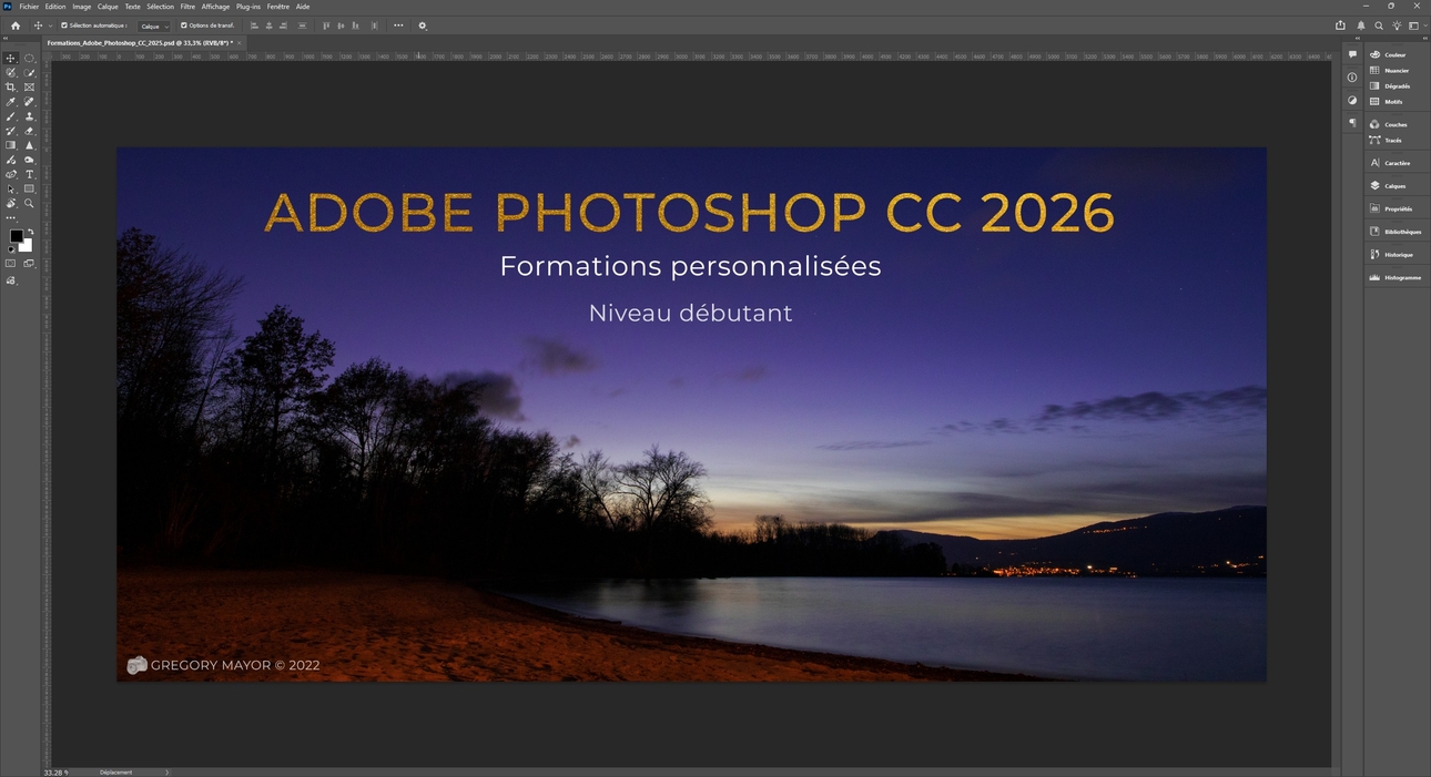 GM INFO - IT SERVICE DESK vous propose des formations personnalisées, niveaux débutants, sur le logiciel Adobe Photoshop CC 2026 ou sur les versions antérieures :